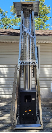 Cozy up on your patio anytime of the year with the Lil' Timber Elite wood pellet heater! NO electricity required!! Gravity fed hopper with a vertical draft system makes this patio heater portable and maintenance free. Not only will it keep you warm and cozy but you can cook on it too!!
